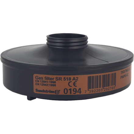 Plynový filter SR 518 A2 je určený na použitie vo ventilátore SR 500/SR 500 Ex. Chráni pred organickými plynmi a výparmi, ako sú rozpúšťadlá, s bodmi varu> +65 ° C. Jednotka SR 500/SR 500 Ex ventilátorov sa musí vždy používať s dvoma filtrami častíc alebo s dvoma kombinovanými filtrami, ktoré pozostávajú z plynových filtrov a filtrov častíc.