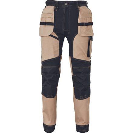 • pánske pracovné nohavice z elastického materiálu • 2 postrannými vreckami a 2 vložiteľnými multifunkčnými vreckami na náradie • "D" krúžok • 1 bočné vrecko na nohavici s príklopkou • 1 vrecko na nohavici na zips • 2 nakladané zadné vrecká s príklopkou • zesílnená oblasť kolien s možnosťou vkladania kolenných výstuh • záložka na nohaviciach umožňujúca predĺženie dĺžky až o 5 cm • zesilnená zadná strana spodku nohavíc • dekoratívne prešitie • 265 g/m2